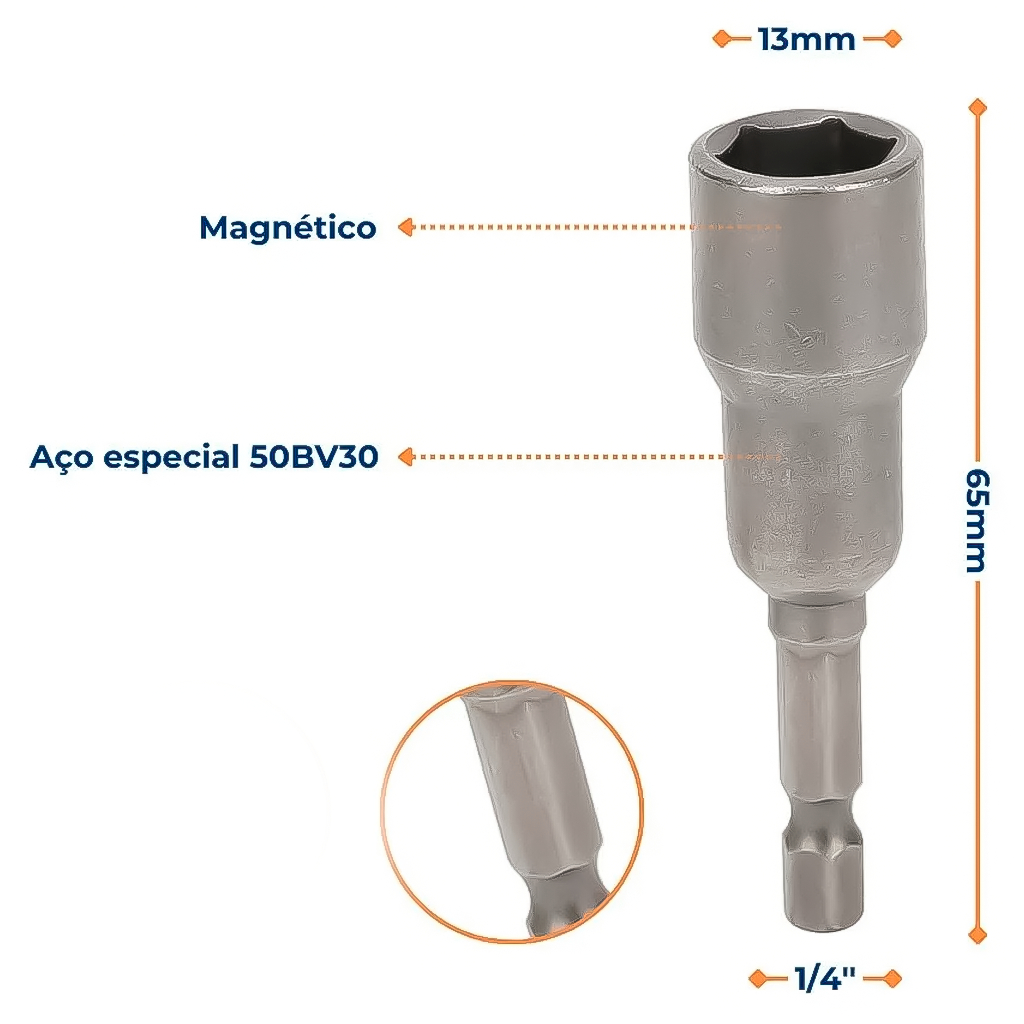 Jogo Bits Soquete Magnético Parafusadeira 13mm 65mm 1/4Pol. Resistente Profissional Polido