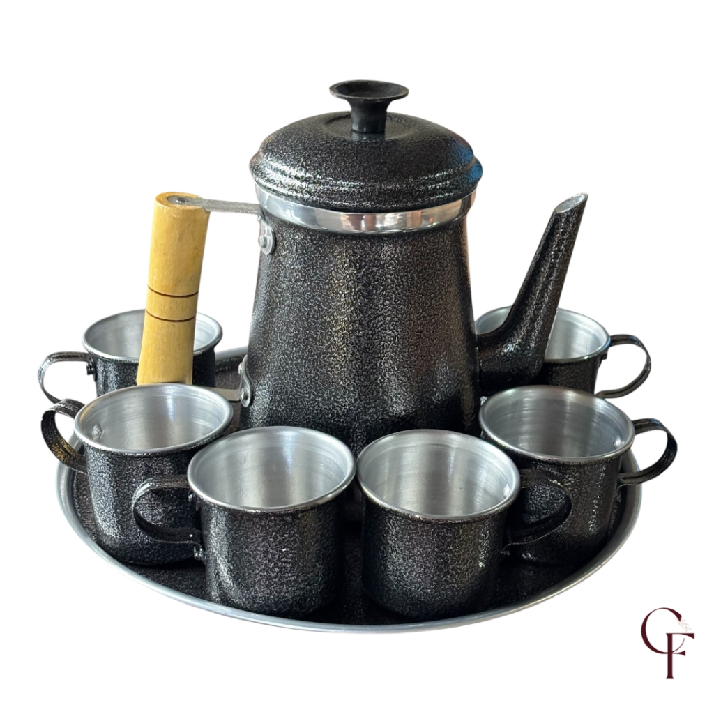 Jogo Bule Kit Café Com 6 Xícaras E Bandeja Café Chá Alumínio Retro Premium