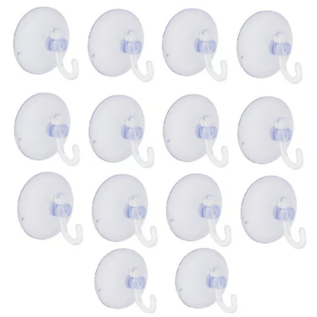 Jogo c/ 14 Ganchos de Parede Ventosa Multiuso Suporta 1kg
