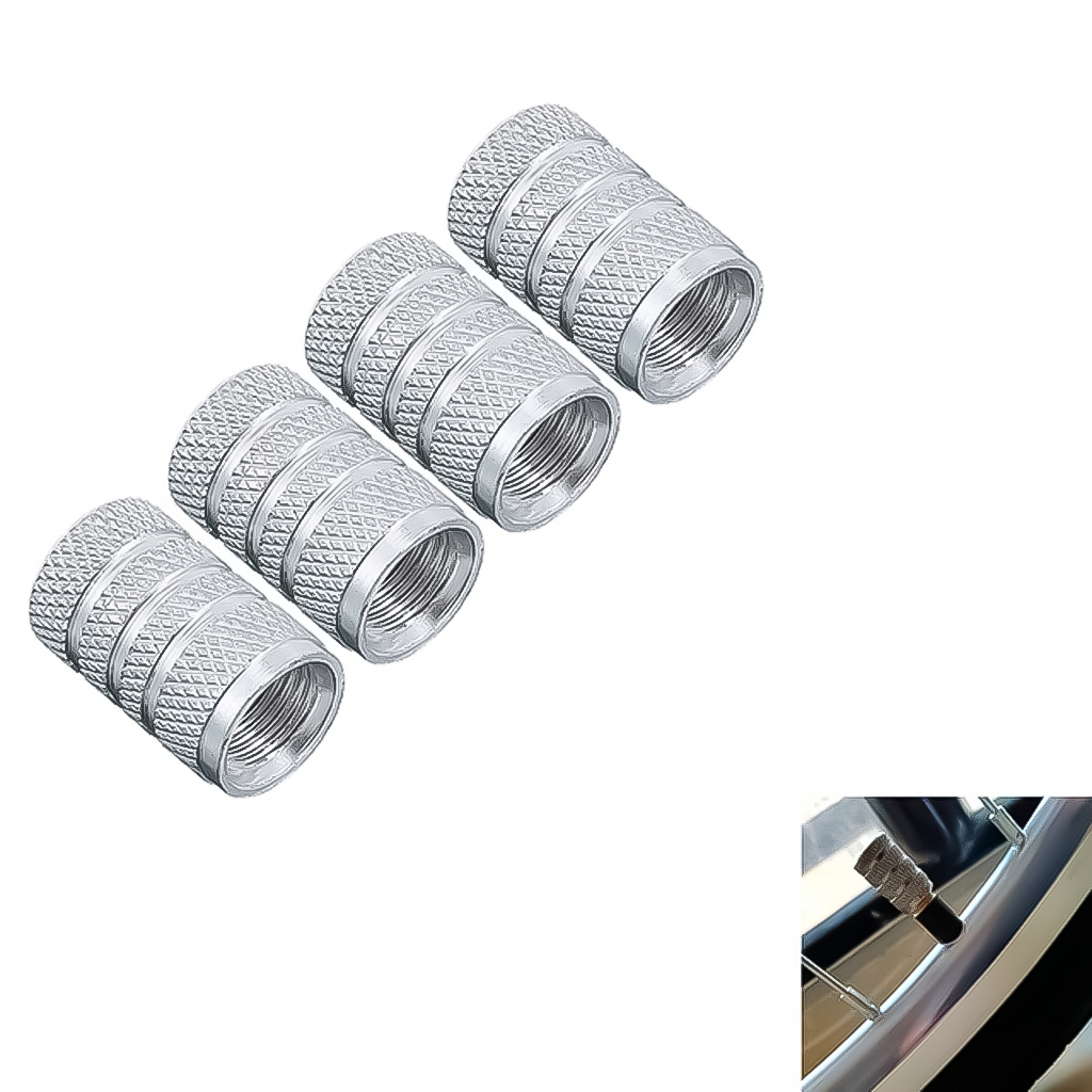 Jogo C/ 4 Tampas P/ Válvula De Pneu Em Alumínio Cromado - Preto