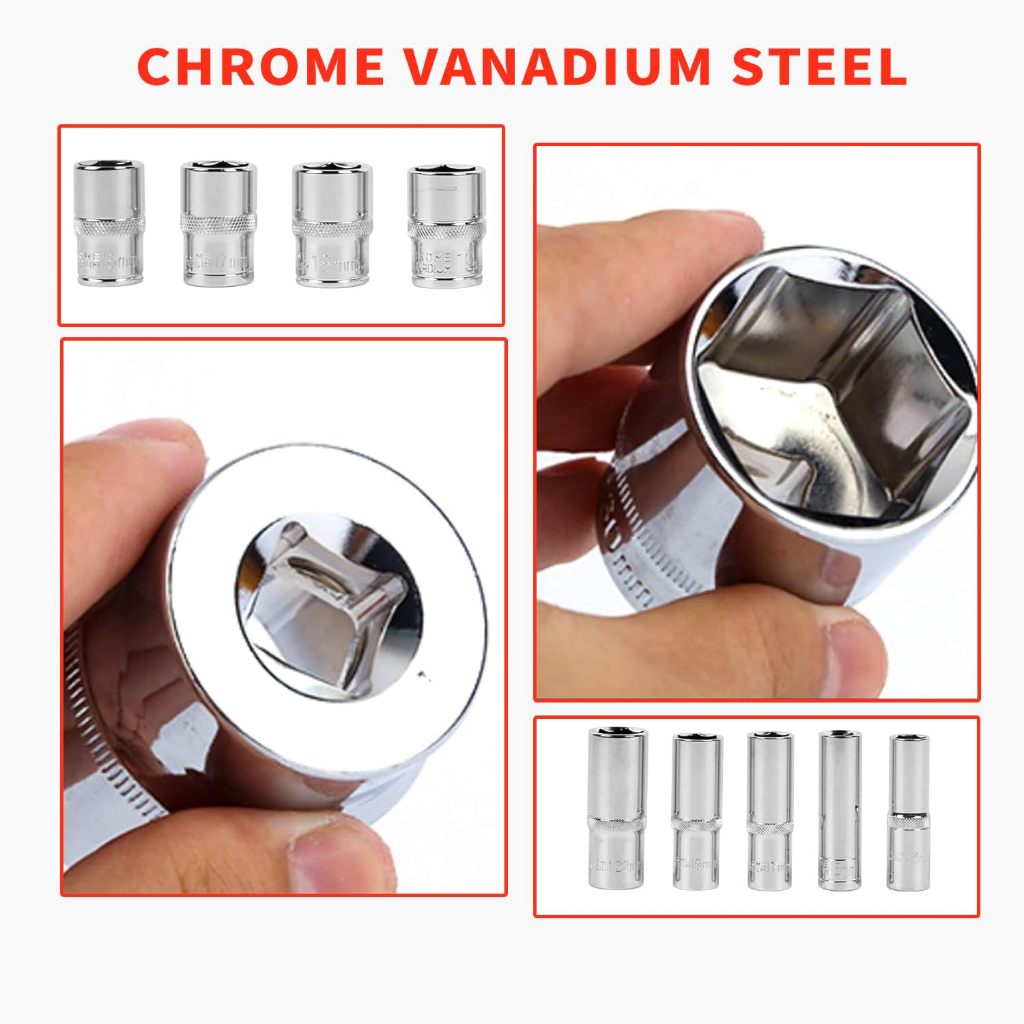 🎉Bem-vindo à nossa loja! Siga a loja para obter cupons 🎟. 🌏 Empresa brasileira local. Garantia de qualidade do produto e padrões ambientais. Envio rápido! 🚚 🛒 Exceto em feriados, enviaremos seu pedido em até 48 horas após o pagamento, garantindo que você receba seu item o mais rápido possível! 🔍 Se você tiver alguma dúvida sobre o produto, deixe uma mensagem na atendimento ao cliente e responderemos prontamente! 📦 OPÇÕES DE KITS DISPONÍVEIS: 🔹 preto- 172 Peças 🔹 vermelho-108 Peças ✅ Escolha o kit ideal no momento da compra conforme sua necessidade! Características ✨Durável: O conjunto de soquetes de impacto 1/4 "e 1/2" unidade métrica e padrão completo é feito de aço Cr-v de vanádio cromo de alta qualidade fundido através de um processo de 6 passagens de forjamento, endurecimento, forjamento, aparamento, formação e carimbo para suportar níveis extremos de variação de torque, com marcações dimensionais em relevo oversized que são fáceis de ler e não se desgastarão. A superfície de aço polida do vanádio do cromo é fácil limpar e altamente resistente à corrosão ✨Ampla gama de aplicações: Conjuntos de chaves de soquete de 1/2" e 1/4" com 24 conjuntos de catraca, tamanhos completos de 5/32" a 9/16" e 4 a 14 milímetros incluindo comprimento deel e raso, soquetes Torx E, soquetes de broca Torx, parafuso entalhado Philips Hex Pz Ph Tt brocas. Este conjunto pode reparar motores, pneus, velas de ignição e outros reparos automotivos profissionais e vários reparos elétricos. Perfeito para seus problemas no trabalho ou reparação em casa. ✨Seguro e confortável: Projetado com o conforto do usuário em mente, a alça de catraca neste conjunto de soquetes de acionamento possui um aperto antiderrapante e mecanismo de catraca suave para operação eficiente e precisa. O botão de liberação rápida na alça da catraca permite mudanças fáceis de socke, economizando tempo e esforço em seus projetos. ✨Caixa de ferramentas de alta densidade: Material de polietileno, para garantir a força do caso ao mesmo tempo para reduzir o peso total do mais grosso e com um bloqueio seguro da alavanca, fácil de transportar, armazenamento seguro e acabamento rápido, resistente ao desgaste. Tamanho da mala: 14.96*11*3.14inch ✨Garantia de qualidade: Nossos produtos são rigorosamente testados para garantir desempenho e durabilidade ideais. Perfeito para o dia dos pais, aniversários, Natal, Ação de Graças e Dia dos Namorados como um presente único. Se você encontrar todos os problemas ou não está satisfeito com o produto, entre em contato conosco primeiro e nós resolveremos todos os seus problemas.