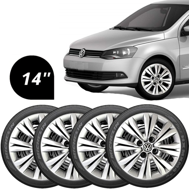 Jogo Calotas Aro 14 Vw Gol G1G2 G3 G4 G5 G6 G7, Voyage + Emblema Resinado
