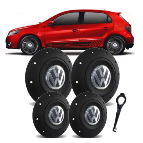 Jogo Calotas Centro P/ Roda Ferro Vw MODELO Amarok Aro 14 /15 Gol Voyage Saveiro G3 G4 G5 G6 Santana Parati + 4 Adesivos