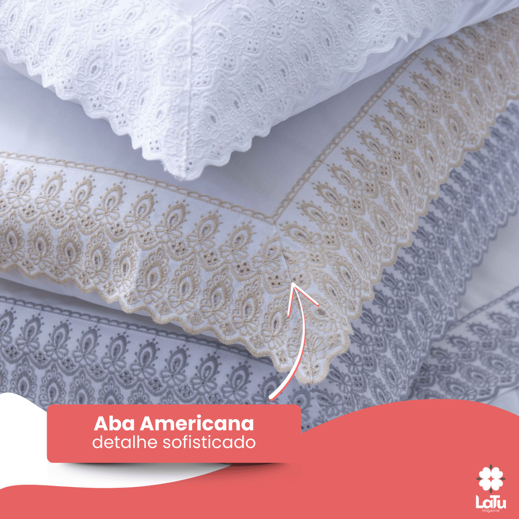 LaTu Magazine – Produto 100% Original – Loja Oficial Shopee O Jogo de Cama Lorena Percal 300 Fios Andreza Enxovais oferece conforto e elegância com toque acetinado. Produzido em 100% algodão, proporciona maciez, frescor e durabilidade, além de acabamento refinado que valoriza a decoração do quarto. Contém: Jogo de Cama – 03 ou 04 Peças (conforme tamanho) 01 Lençol de cima (plano) 01 Lençol de baixo com elástico 01 ou 02 Fronhas – 50cm x 70cm Tamanhos disponíveis Solteiro – 03 Peças 01 Lençol plano – 2,40m x 1,70m 01 Lençol com elástico – 2,00m x 1,00m x 30cm 01 Fronha – 50cm x 70cm Casal – 04 Peças 01 Lençol plano – 2,40m x 2,20m 01 Lençol com elástico – 1,90m x 1,40m x 40cm 02 Fronhas – 50cm x 70cm Queen – 04 Peças 01 Lençol plano – 2,60m x 2,40m 01 Lençol com elástico – 2,00m x 1,60m x 40cm 02 Fronhas – 50cm x 70cm King – 04 Peças 01 Lençol plano – 2,90m x 2,70m 01 Lençol com elástico – 2,03m x 1,93m x 40cm 02 Fronhas – 50cm x 70cm Composição: Tecido: Percal 300 fios – 100% Algodão Diferenciais: Toque acetinado suave Conforto e frescor garantidos Acabamento refinado Tecido resistente e de fácil manutenção Fabricado por: Andreza Enxovais Comercializado por: LaTu Magazine – O luxo de se sentir em casa.