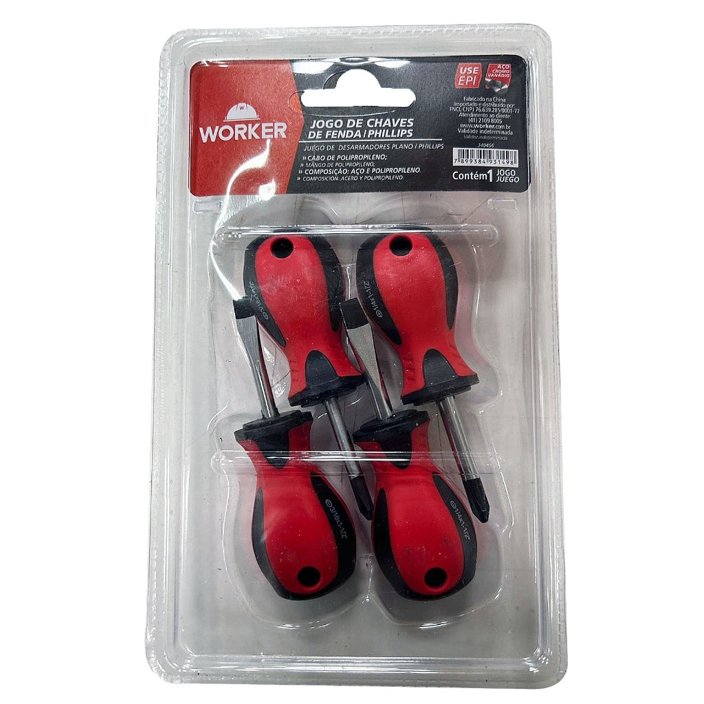 Jogo Chave De Fenda E Phillips Toco 04 Pçs Worker - 340456
