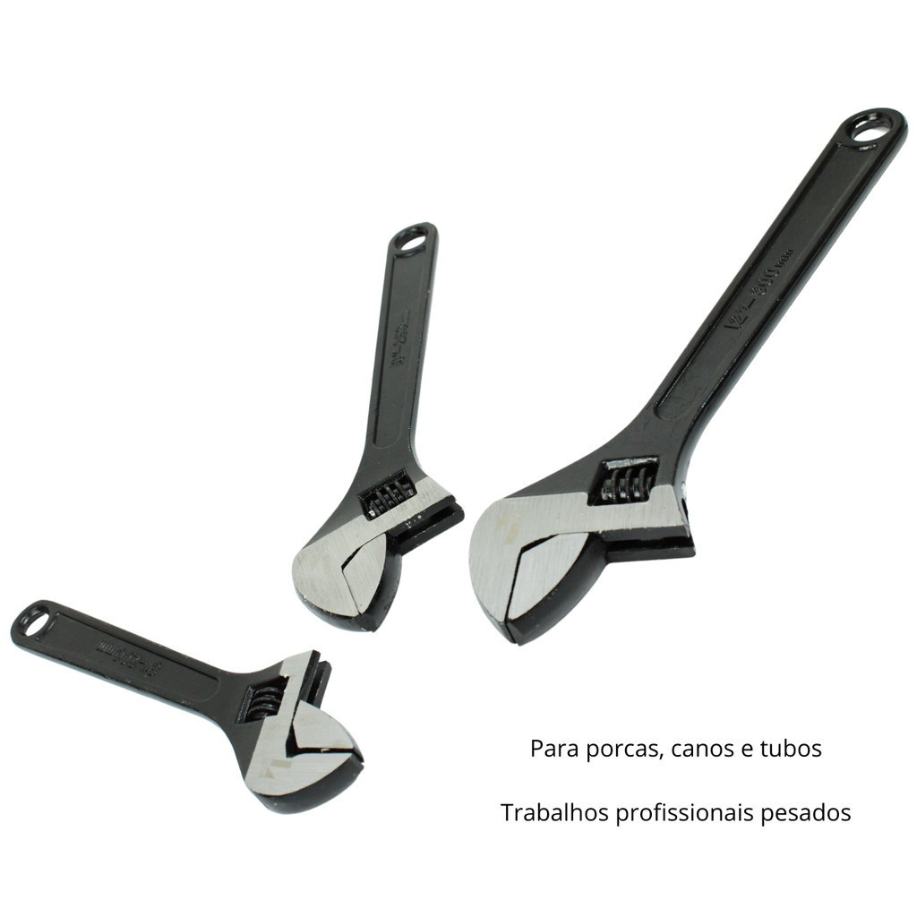 Jogo Chave Inglesa Ajustável 12,10 E 8 Polegadas 3 Peças - PROFISSIONAL DE QUALIDADE