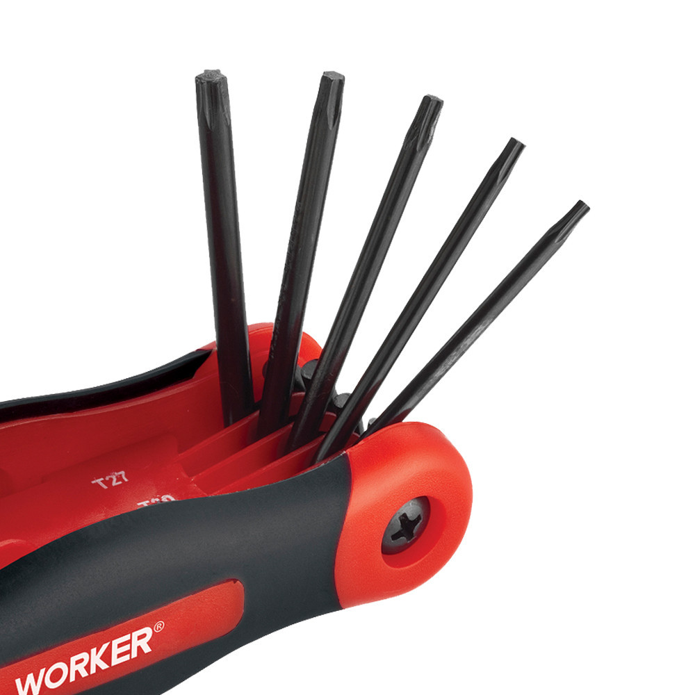 Jogo Chave Torx 8 Peças T9 a T40 Tipo Canivete Worker
