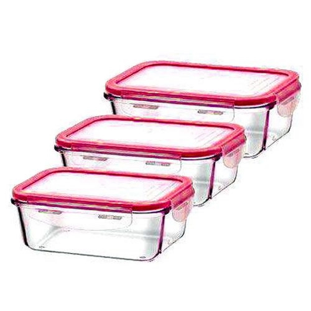Jogo Com 3 Potes De Vidro Ou Plástico Refratario Hermetico Com Tampa