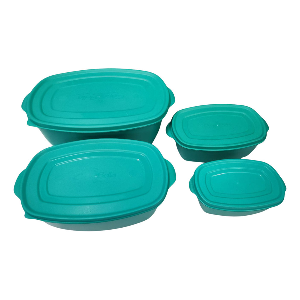 Jogo Com 4 Potes C/tampa Organizador Vasilha Resistente Oval Verde Tifany