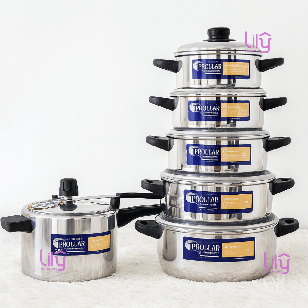 Os produtos da Lily de Casa além da beleza e qualidade, também possuem diversas tecnologias que deixam seu dia a dia mais prático e seguro. As peças possuem certificação da INMETRO. CONFIRA OS PRINCIPAIS DIFERENCIAS: * Espessura: 0.70mm (Alumínio fino) * Asas e Pomel em baquelite, ergonômicas, Isolantes que não esquentam, proporcionando um manuseio muito mais seguro e confortável; * Interior Alumínio com exterior em alumínio na cor Rosa, Rubi, Preto e polido. DIMENSOES DAS PANELAS: 1 Caçarola 14cm (1,1 Litro) 1 Caçarola 16cm (1,5 Litros) 1 Caçarola 18cm (2,1 Litros) 1 Caçarola 20cm (2,8 Litros) 1 Caçarola 22cm (3,3 Litros) 1 Pressão 2,5 Litros * Peso do KIT 3kg DICA: - Antes de usar o utensílio, retire a etiqueta e lave com água, sabão ou detergente com esponja macia; - Não deixe o produto vazio no fogo, o superaquecimento pode danificar a vida útil do produto; - Não utiliza o produto em fogo alto, isso pode danificar a tinta do produto; - Na limpeza, não utilizar abrasivos nem esponja de aço. Obs.: Após a confirmação do pagamento, enviamos o mais rápido possível.