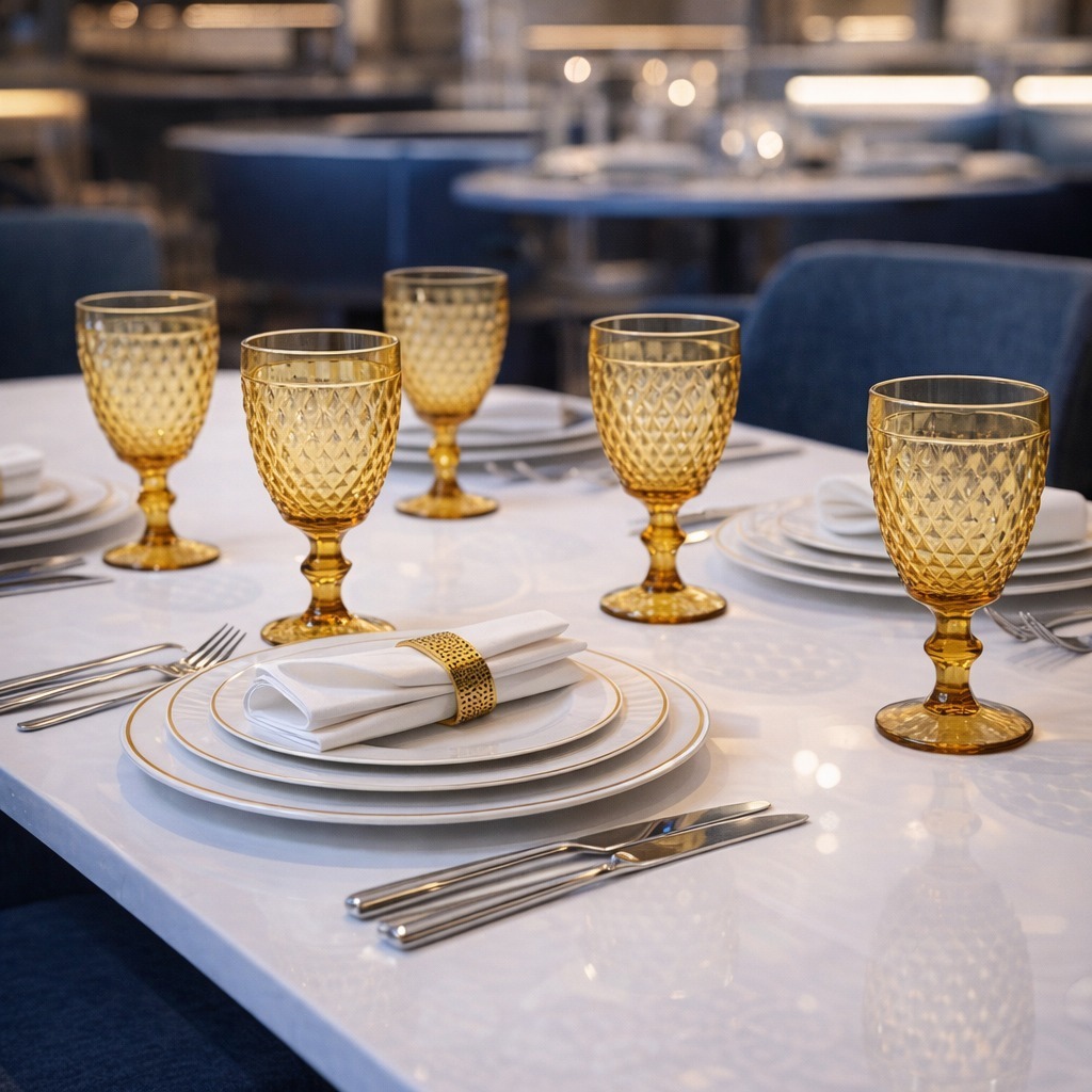 Jogo com 6 Taças Bico de Abacaxi cor Âmbar - 300ml A Taça Bico de Abacaxi é perfeita para deixar sua mesa mais elegante e charmosa. ✨ Com design sofisticado e textura em relevo, ela valoriza qualquer bebida, trazendo um toque clássico e refinado para seus momentos especiais. Ideal para servir: Água, sucos, refrigerantes, drinks, água de coco e outras bebidas. Diferenciais: Design bico de abacaxi em relevo Vidro resistente e de alta qualidade Visual elegante e decorativo Perfeita para uso diário ou ocasiões especiais Material: Vidro (Espesso) Capacidade: 300 ml Dimensões aproximadas: Altura: 16 cm Diâmetro da boca: 8,5 cm Diâmetro do pé: 7,5 cm Conteúdo: 6 Taças de Vidro. Cuidados: Lavar com esponja macia e detergente neutro Indicação: Ideal para compor mesas postas, festas, jantares e decoração. Qualquer dúvida estou a disposição!