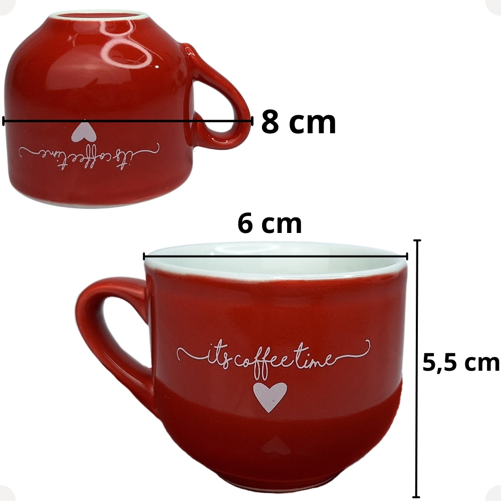 Jogo com 6 Xícaras de Porcelana E Pires Chá Café L'amour Vermelha 90ml Lamour da Hauskraft 12 Peças.