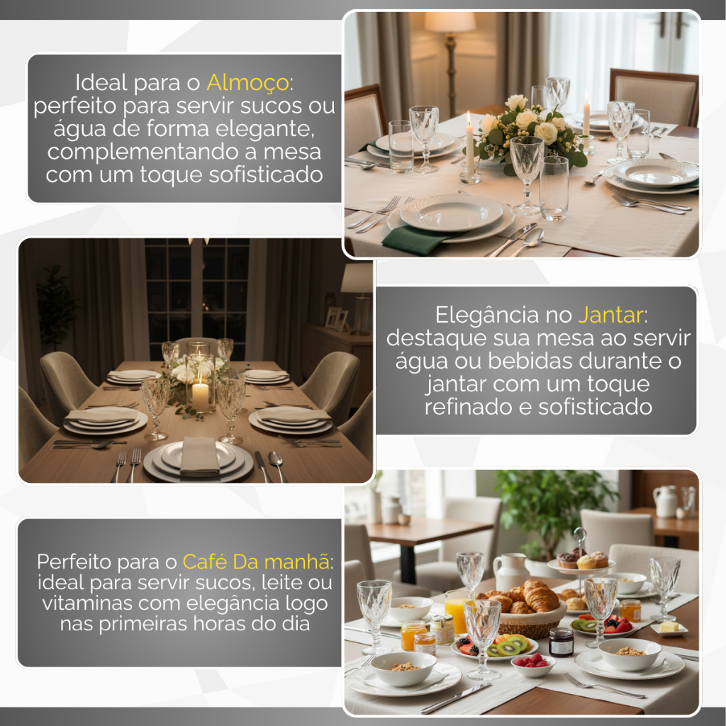 Conjunto de 6 Taças Diamond 260ml / 375ml: Beleza e Sofisticação em Cada Gole! Descrição: Apresentamos a você o Conjunto de 6 Taças Diamond 260ml ou 340ml, a escolha perfeita para elevar o requinte das suas celebrações e momentos especiais. Com um design deslumbrante e capacidade ideal, estas taças não apenas realçarão o sabor das suas bebidas, mas também oferecerão uma série de vantagens que transformarão seus brindes em experiências memoráveis. Vantagens em Destaque: Capacidade Versátil: Com uma capacidade de 260ml ou 375ml, essas taças são ideais para servir uma variedade de bebidas, desde espumantes e vinhos até coquetéis e sobremesas. Sua versatilidade as torna indispensáveis para qualquer evento. Construção de Qualidade: Fabricadas com materiais premium, essas taças são resistentes e duráveis. Seu design refinado combina com a robustez, garantindo uma experiência de uso prolongada. Realce dos Aromas: As taças foram projetadas para realçar os aromas e sabores das suas bebidas, proporcionando uma experiência sensorial completa a cada gole. Fácil Manutenção: A limpeza é uma brisa, permitindo que você aproveite mais o momento e menos o trabalho. Seu design facilita a lavagem à mão ou na máquina de lavar louça. Presente Sofisticado: Surpreenda seus entes queridos com um presente elegante e funcional. Este conjunto de taças é a opção perfeita para aniversários, casamentos, ou qualquer ocasião especial. Adquira hoje mesmo e descubra como a excelência no design pode transformar seus momentos em lembranças inesquecíveis! Um Produto da Casa Ipiranga!