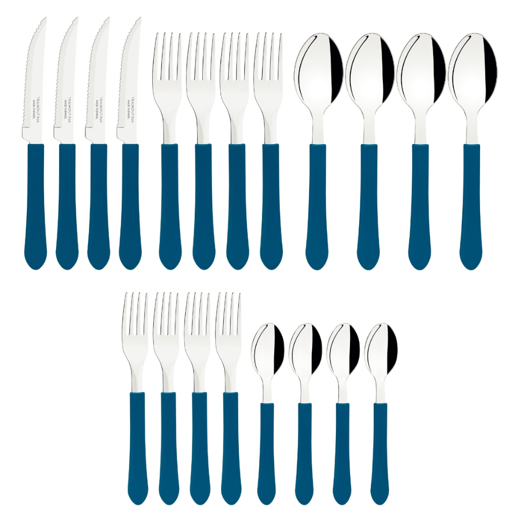 Jogo Conjunto de Facas Faqueiro Leme com 20 Peças Várias Cores Talheres Tramontina