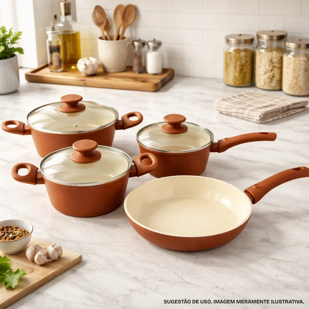 | Jogo Conjunto de Panelas 4 Peças Cerâmica com Fundo de Indução Anti... este produto | R$ 339,00 | 15% | 5.0/5 | 5 |