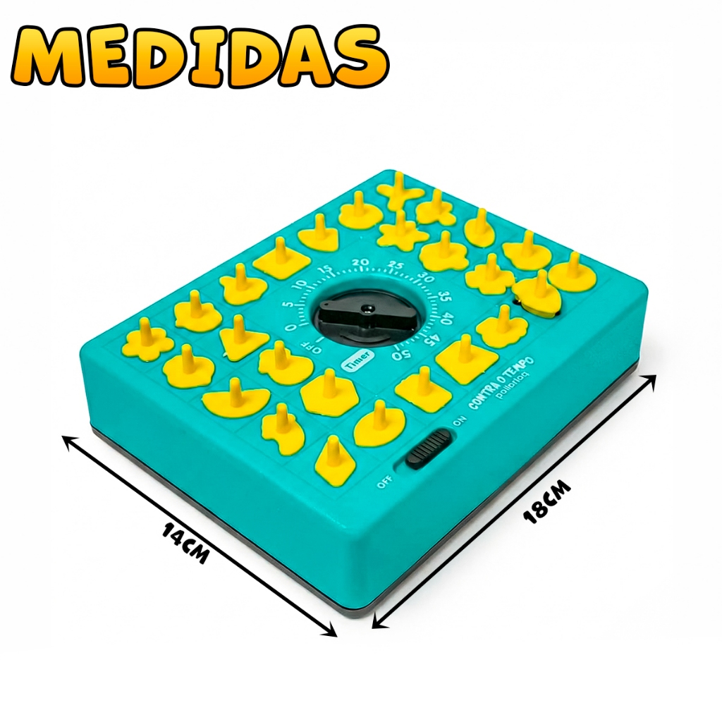 Jogo Contra O Tempo Encaixe Formas Geométricas Educativo Raciocínio Infantil Menino Menina Desperte a agilidade e o raciocínio rápido do seu filho com o Jogo Contra o Tempo Polibrinq! Um desafio emocionante que combina concentração, coordenação motora e diversão em uma corrida contra o relógio. Desenvolvido para estimular habilidades cognitivas enquanto proporciona momentos de pura adrenalina, este jogo educativo é perfeito para crianças que adoram desafios. Fabricado com materiais seguros e resistentes, garante qualidade e diversão para toda a família. Características do produto O Jogo Contra o Tempo desafia as crianças a encaixarem todas as 24 peças geométricas amarelas nos espaços corretos da base turquesa antes que o timer mecânico chegue ao fim. Com formato ergonômico e peças em tamanhos ideais para mãos infantis, o jogo promove agilidade, reconhecimento de formas e pensamento estratégico de maneira lúdica e envolvente. Não utiliza pilhas ou baterias! O cronômetro mecânico é acionado manualmente, proporcionando autonomia e sustentabilidade. As peças geométricas variadas estimulam o raciocínio espacial e a resolução rápida de problemas. Ideal para brincadeiras individuais ou em grupo, criando momentos de competição saudável e interação entre amigos e família. Especificações Idade recomendada: A partir de 5 anos Material: Plástico ABS resistente e atóxico Quantidade de peças: 24 peças geométricas + 1 base com timer Timer: Mecânico (não requer pilhas) Dimensões da base: Aproximadamente 20 x 20 x 5 cm Cor: Turquesa e amarelo SKU: Contra-Tempo-001 Certificação: INMETRO Itens inclusos 1 Base de jogo com timer mecânico integrado 24 Peças geométricas amarelas para encaixe 1 Manual de instruções Garantia e envio 90 dias de garantia contra defeitos de fabricação. Devolução em até 7 dias após o recebimento. Fabricado pela Polibrinq, marca com mais de 20 anos de tradição no desenvolvimento de brinquedos e acessórios que unem diversão, estilo e segurança. Imagens meramente ilustrativas. As cores e detalhes dos produtos podem variar de acordo com o lote do fabricante.