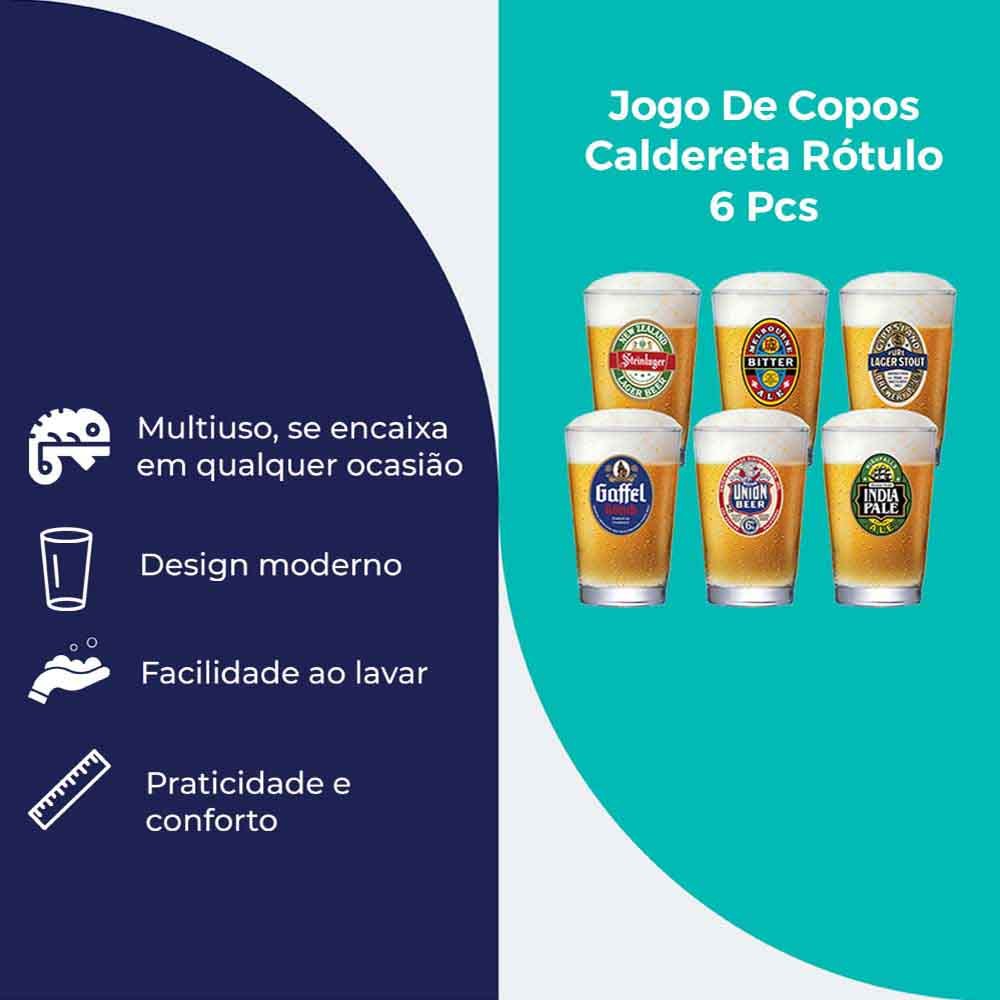 Jogo Copo de Vidro Caldereta Para Cerveja 6 Peças, Multiuso 350ml - Ruvolo