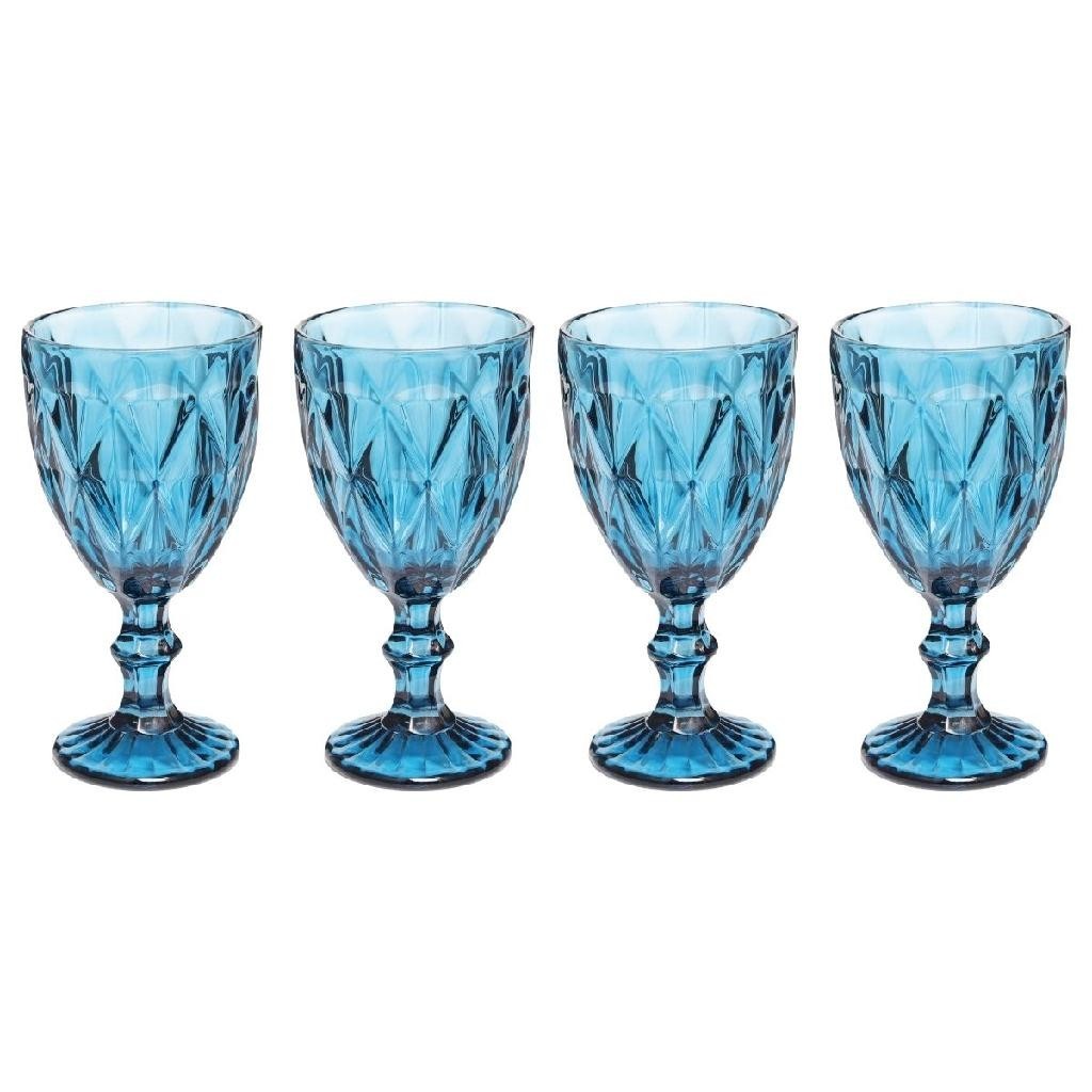 Jogo Copo Taça Vidro Diamante Azul Para Agua 300ml - 4un