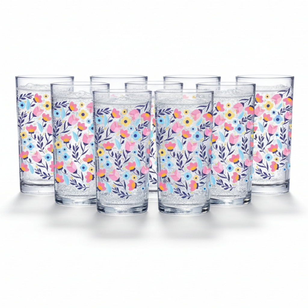 Jogo Copos de Vidro Flores 2 Long Drink 225ml Multiuso Tuliupa Ruvolo