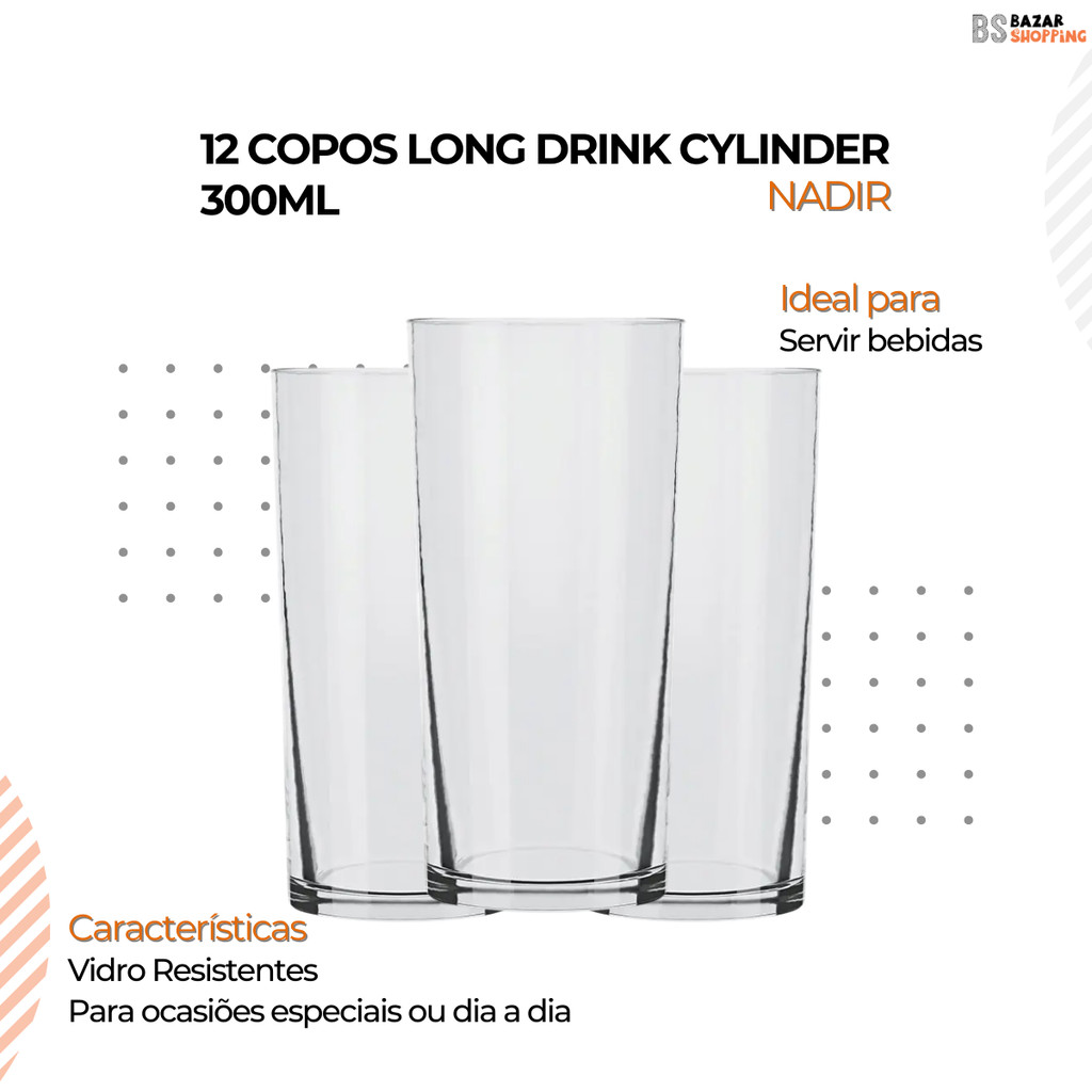 | Jogo Copos Vidro Suco Agua Cylinder 300 Ml Nadir 12 Unid Elegante P... este produto | R$ 89,99 | — | 4.9/5 | — |