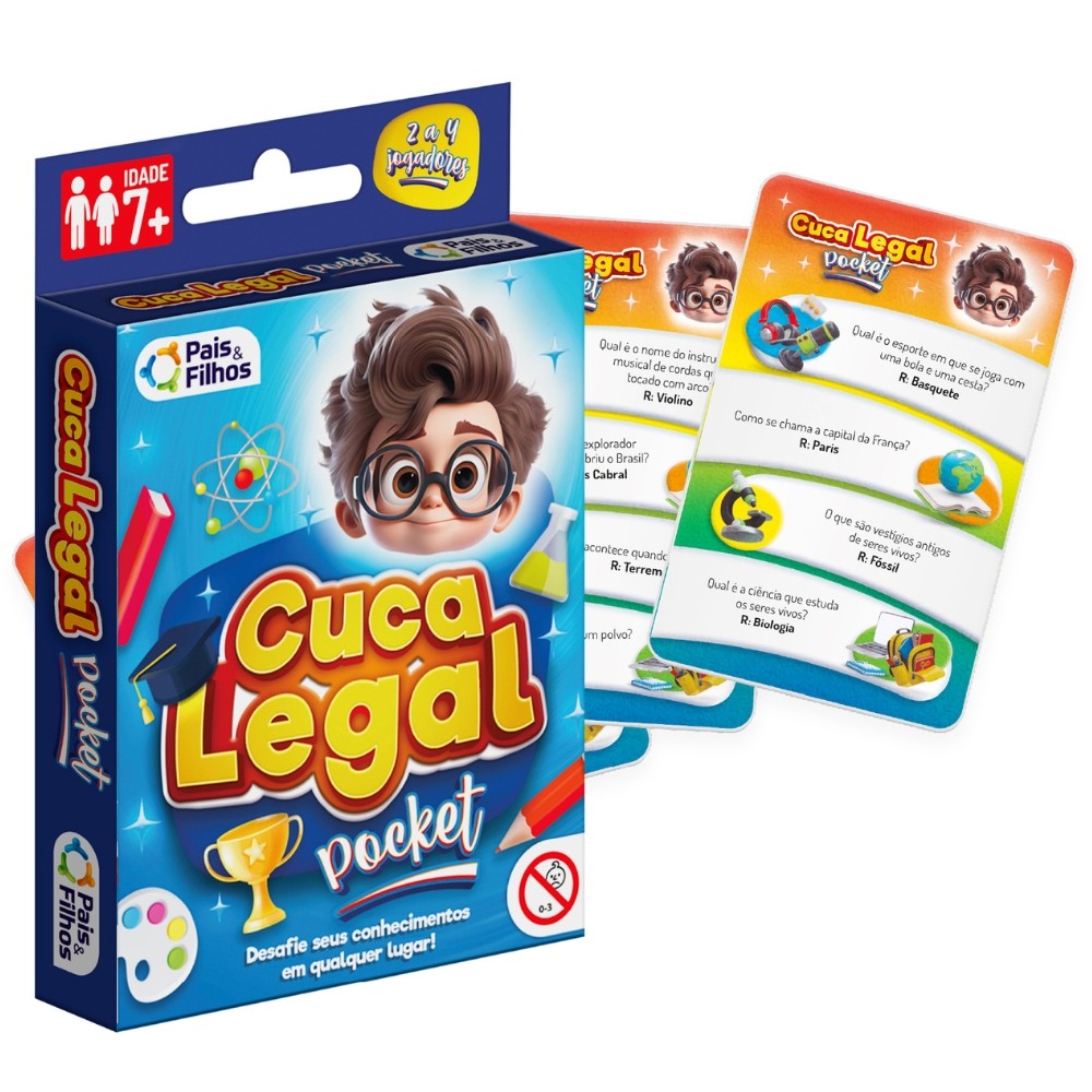 ***PRODUTO PAIS E FILHOS EM PORTUGUÊS, ORIGINAL, OFICIAL, LACRADO E COM NOTA FISCAL*** JOGO CUCA LEGAL POCKET PAIS E FILHOS 220 PERGUNTAS BRINQUEDO RESPOSTA PROFESSOR EDUCATIVO DESAFIO & Informações Técnicas: - Material: Papel Cartão. - Contém: 55 cartas com 220 perguntas e 1 carta regra. - EAN: 7908470029169 - Código: 792916 - Produto certificado: INMETRO REGISTRO:003733/2019 - Dimensões: 2 cm x 11 cm x 9 cm - Peso: 80g - JOGO - 7+ ANOS - PAIS & FILHOS - 2 à 4 jogadores - Garantia: Contra defeitos de fabricação - Prazo de Validade: Indeterminado Obs: O tamanho de cada peça pode sofrer variações. Imagens meramente ilustrativas. O produto e as cores podem variar de acordo com o apresentado na embalagem. ATENÇÃO! NÃO RECOMENDÁVEL PARA CRIANÇAS MENORES DE 3 (TRÊS) ANOS POR PODER GERAR PARTE(S) PEQUENA(S) QUE PODE(M) SER ENGOLIDA(S) OU ASPIRADA(S). --------------------------------------------------- SEJA MUITO BEM VINDO(A) A LOJA DE BRINQUEDOS DO CANAL 40 POR QUÊ COMPRAR NA LOJA DE BRINQUEDOS DO CANAL 40? *Enviamos seu pedido sempre no mesmo dia ou no máximo no próximo dia útil dependendo do horário da sua compra! *Produtos lacrados, originais e oficiais da mais alta qualidade; *Experiência única de compra (incluindo a experiência olfativa - você sentirá nosso cheiro); *Todos os nossos produtos estão à pronta entrega em nosso estoque físico aqui no Brasil; *Seu pedido será enviado com segurança e agilidade; IMPORTANTE: Tenha tranquilidade de comprar com quem está disposto a te oferecer o melhor atendimento, caso tenha algum problema após a compra, conte com nossa equipe de pós venda para solucioná-lo! A LOJA DE BRINQUEDOS DO CANAL 40 tem a missão de garantir a satisfação total do seu cliente, tanto nos produtos quanto no atendimento. Assim estabelecemos uma relação única de confiança! Não encontrou o que procurava? Clique na foto da nossa logo para entrar em nossa loja e ver todos os nossos produtos OU nos mande uma mensagem diretamente aqui pelo chat. SERÁ UM PRAZER ATENDÊ-LO(A)! --------------------------------------------------- MUITO PRAZER, ME CHAMO FELIPE CAMARGO, SOU DONO, CEO E CRIADOR DE CONTEÚDO DO CANAL 40. DESDE JÁ, DEIXO AQUI O MEU MUITO OBRIGADO!!! CANAL 40 - LOJA DE BRINQUEDOS LTDA DEIXE SUA CRIANÇA INTERIOR FELIZ E APROVEITE!