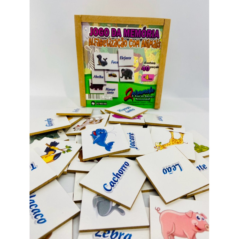 Jogo da Memória 40peças Alfabetização com Animais Brinquedo Educativo Pedagógico Alfabetização Infantil