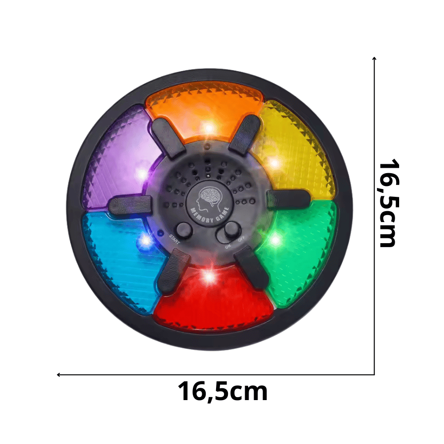 Jogo da Memoria com Luz 6 Cores Com um design compacto e funcional, o Genius emite sons e luzes para que as crianças reproduzam a sequência corretamente. Basta apertar o botão central "MEMORY GAME" para iniciar o desafio e colocar a memória à prova. Ideal para crianças e também para adultos que buscam um momento divertido e desafiador, este jogo é um método incrível para aprender e se divertir ao mesmo tempo. Especificações Jogo da Memoria: - Dimensões Aproximadas: 16,5x 16,5 - Alimentação: 3 pilhas AAA (não inclusas) - Material: Plástico resistente e seguro OBS: Variação mini Memoria Disponível: - 7,5x7,5cm. - 4 Cores. Benefícios - Aprendizado Lúdico: Estimula o desenvolvimento cognitivo e motor de forma divertida. - Portátil e Prático: Compacto, pode ser levado para qualquer lugar. - Diversão em Família: Perfeito para momentos de interação entre pais e filhos. - Melhora a Memória: Treina a repetição de sequências e estimula o cérebro. - Seguro e Durável: Fabricado com materiais resistentes e de alta qualidade. Qualquer dúvida estamos a disposição!