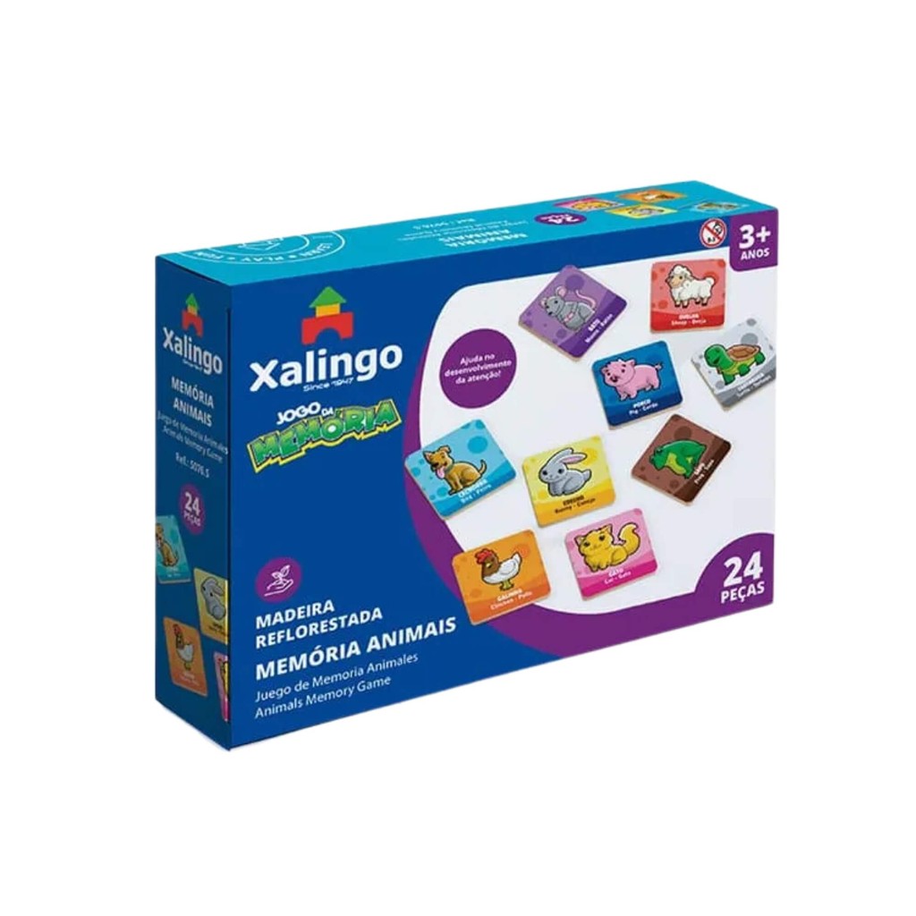 Jogo da Memória Animais com 24 Peças Brinquedo Educativo Xalingo - 50765