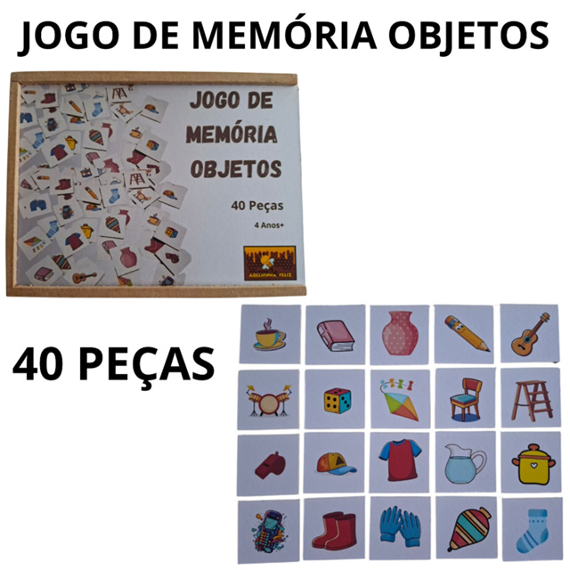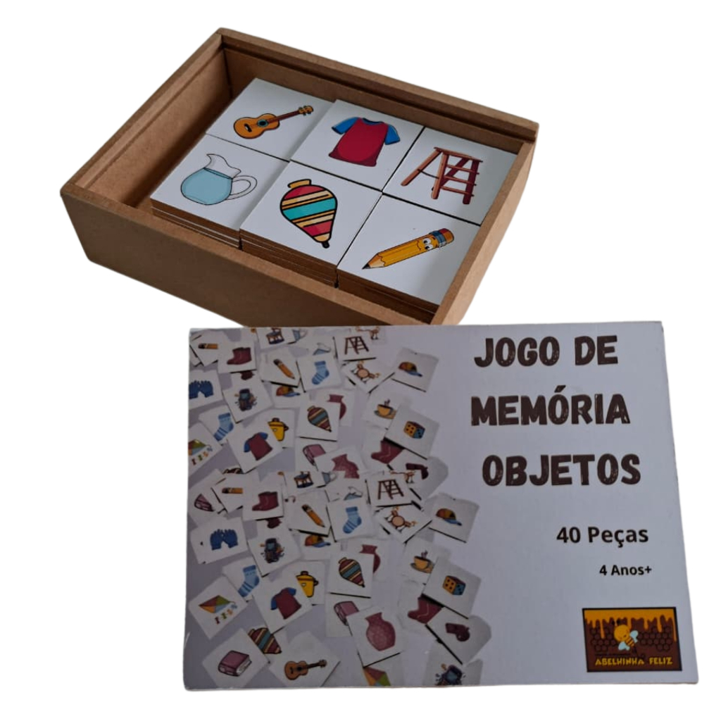 JOGO DA MEMÓRIA OBJETOS 40 PEÇAS EM MDF COM CAIXA