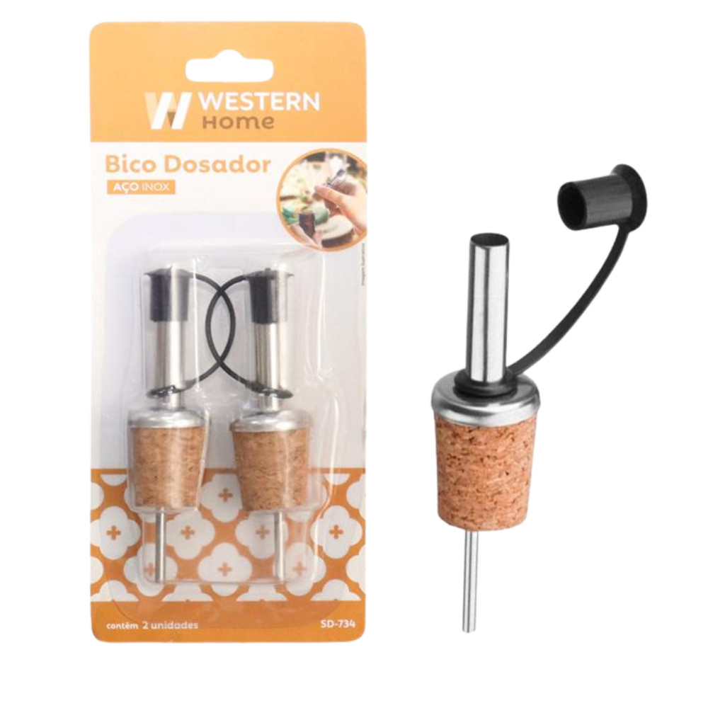 JOGO DE 2 BICOS DOSADORES EM AÇO INOX WESTERN Otimize suas receitas e sirva com precisão com nossos Bicos Dosadores em Inox! Perfeitos para temperar, servir e dosar líquidos com facilidade.O formato dos bicos permite um fluxo controlado de líquidos, ideal para óleos, vinagres, molhos e mais. Não fique sem os seus! Adquira já os 2 Bicos Dosadores em Inox e leve mais praticidade e estilo para sua cozinha! JOGO 2 BICOS DOSADORES INOX - Dimensões da Peça: 2,5 x 2,5 x 9cm (Cada) - Dimensões da Embalagem: 8 x 3 x 18cm - Quantidade de Inner: 24 Peças - Dimensões da Inner: 22,5 x 16,5 x 18cm - Quantidade Master: 144 Peças - Dimensões Master: 51 x 24 x 38cm - Material: Aço inoxidável e Cortiça - Cor: Marrom com preto e prata - Tipo de Embalagem: Blister - Marca: Western Home - Origem: China - Contém: 2 unidades - Antes do uso: • Verificar se o produto está em perfeitas condições de uso. - Perigos: • Cuidado ao manusear, contém item(s) cortantes e perfurantes. - Advertência/Atenção: • Manter fora do alcance das crianças.