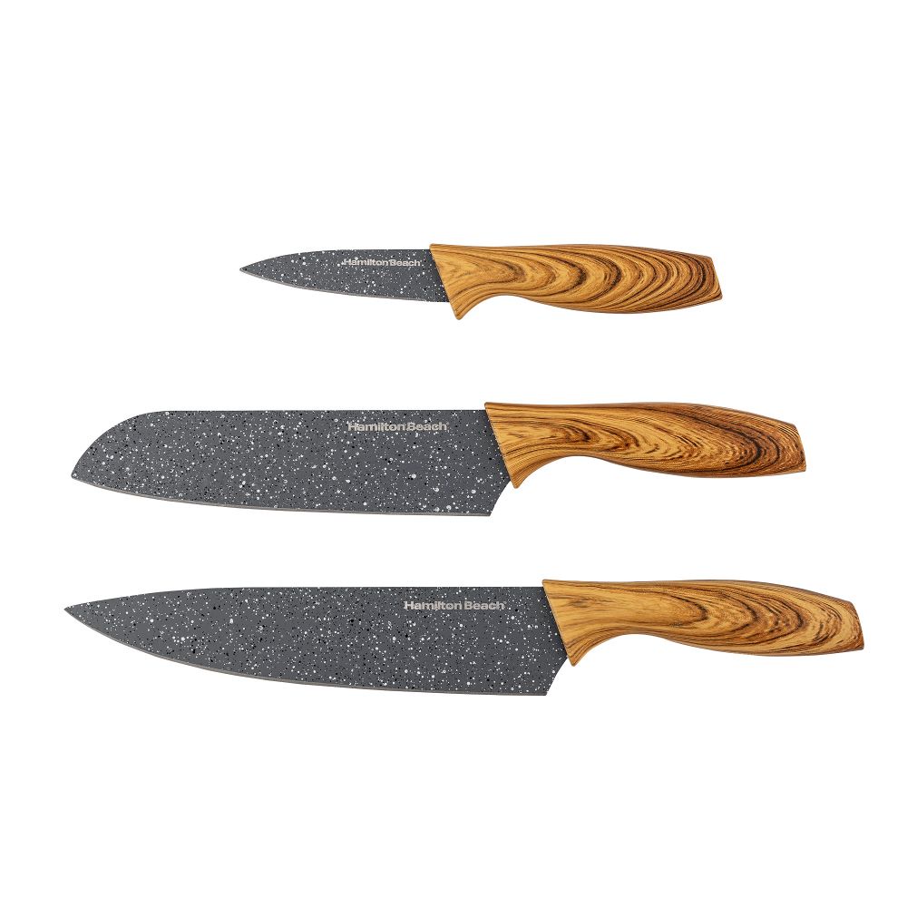 Jogo de 3 Facas Inox Hamilton Beach Com Tábua Grey Stone