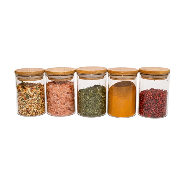 Jogo De 5 Potes Herméticos De Vidro Tampa De Bambu - 250 Ml