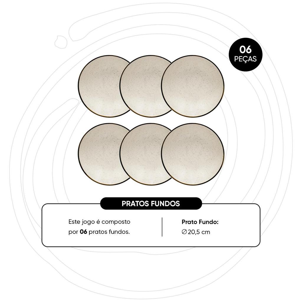 Jogo De 6 Pratos Fundos 20,5 Cm Oxford Unni Brisa