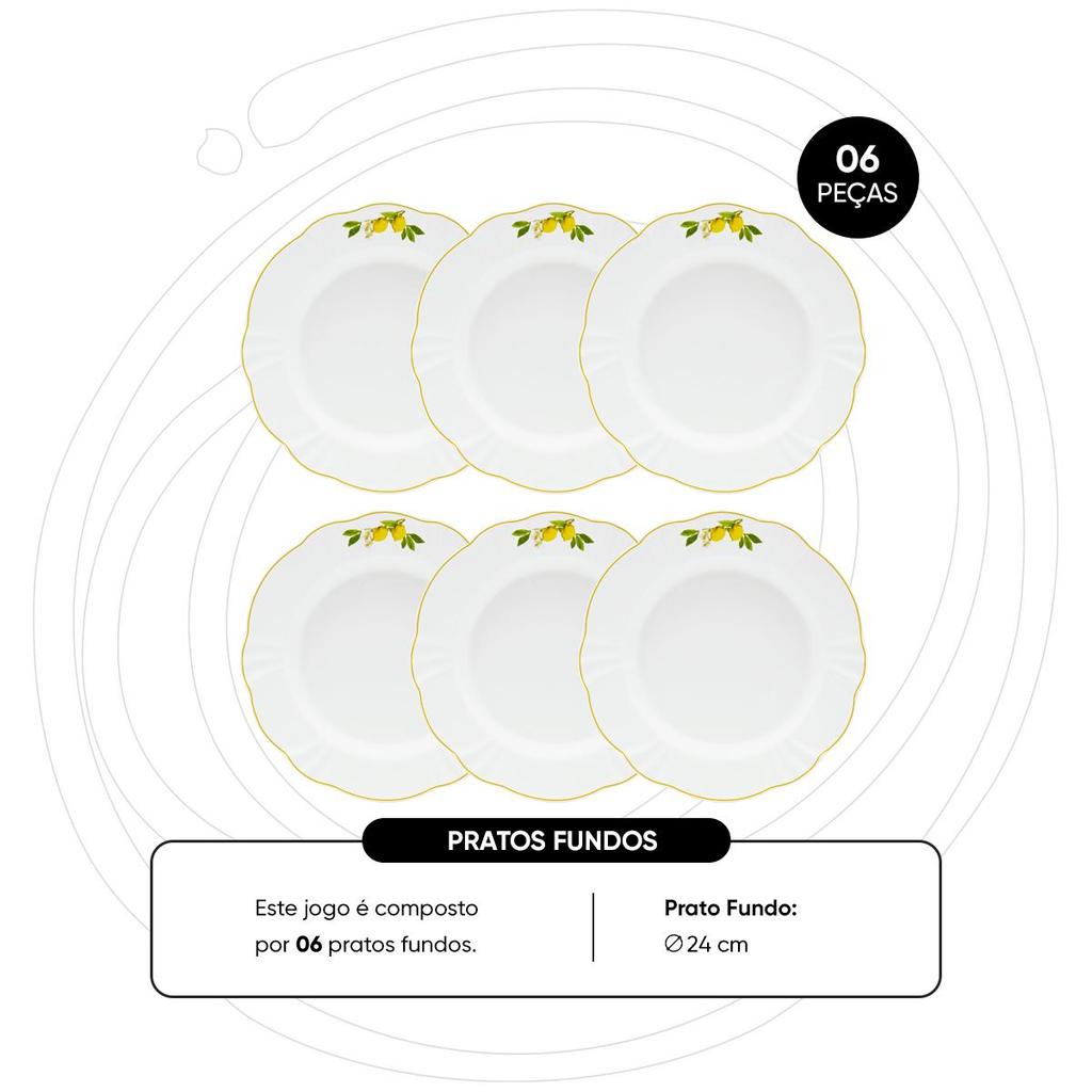 Jogo De 6 Pratos Fundos 24 Cm Oxford Soleil Limoni