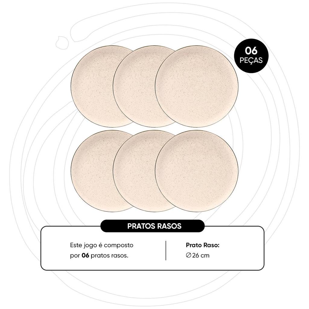 Jogo de 6 Pratos Rasos 26 cm Oxford Flat Duna