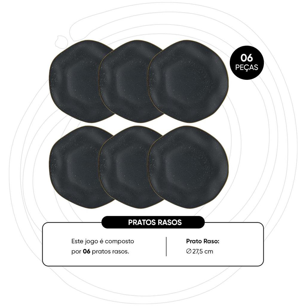 Jogo de 6 Pratos Rasos 27,5cm Oxford Ryo Volcano
