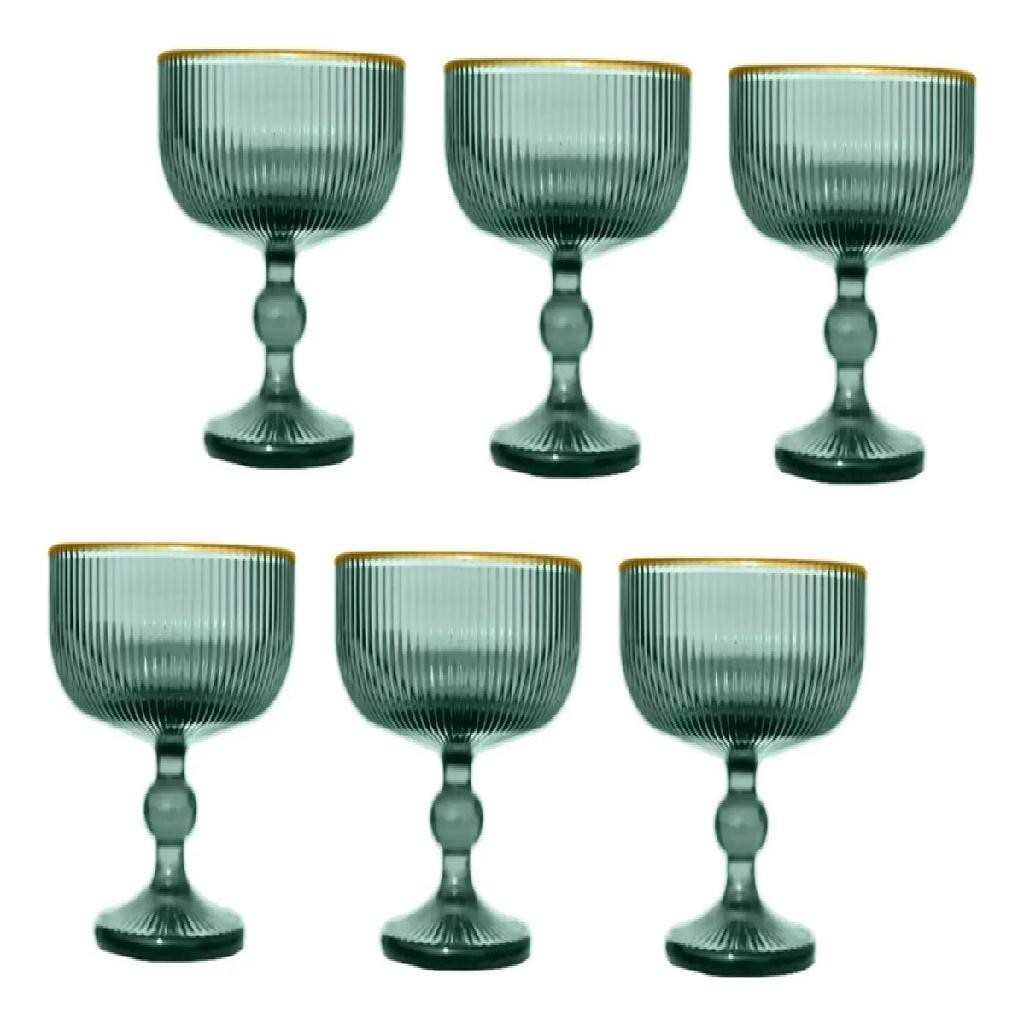 Jogo de 6 taças Sobremesa Cameratta em vidro com borda dourada 365ml A16,3cm verde