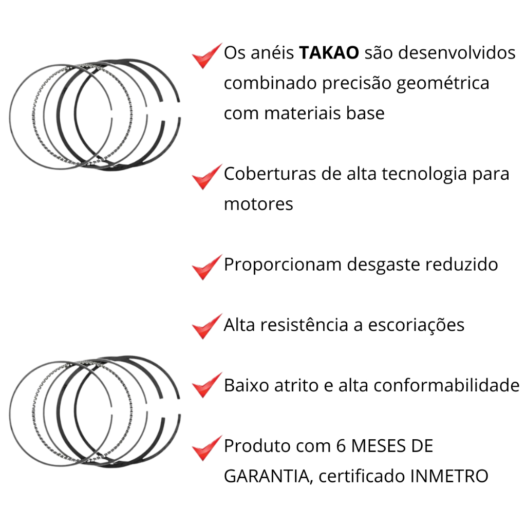 RIEDE MOTOR PEÇAS - SÃO PAULO MARCA: TAKAO GARANTIA: 06 MESES CONTÉM: 01 JOGO DE ANEIS MEDIDA: STANDER OBS: 79,5 x 1,5 x 1,5 x 2,5 APLICAÇÃO: EUROPEUS RENAULT 1.6L 16V DOHC K4M GAS FLEX 01-04 CLIO SCENIC 1.6L 16V DOHC K4M GAS FLEX 02-06 KANGOO 1.6L 16V DOHC K4M GAS FLEX 01-05 MEGANE 1.6L 16V DOHC K4M FLEX 07-16 LOGAN 1.6L 16V DOHC K4M FLEX 07-16 SANDERO SYMBOL 1.6L 8V K7M GAS 00 CLIO NOVO 1.6L 8V K7M GAS 00-02 KANGOO 1.6L 8V K7M GAS 98-00 MEGANE 1.6L 16V DOHC K4M 11-17 DUSTER OROCH FLUENCE 1.6L 16V DOHC K4M HI-FLEX 05-15 CLIO SCENIC 1.6L 16V DOHC K4M HI-FLEX 06-15 MEGANE 1.6L 16V DOHC K4M HI-FLEX 07-15 KANGOO JAPONESES NISSAN 1.6L 16V K4M FLEX 09-15 LIVINA Efetue a compra com CPF. Não efetuamos venda para CNPJ para fora do Estado de SP, devido imposto ST que se emitida a responsabilidade do pagamento é do comprador, pois vendemos apenas consumidor final. -