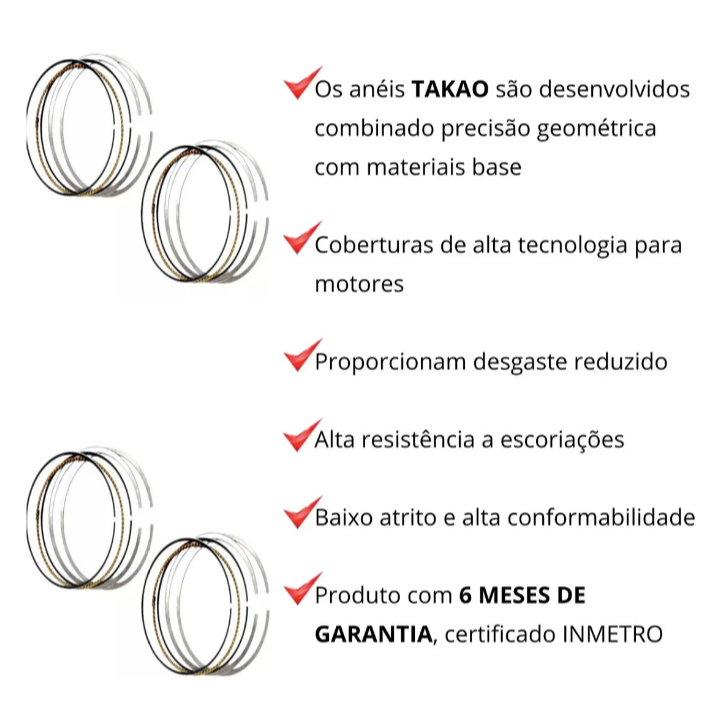 JOGO DE ANEIS STANDER TAKAO PARA VOLKSWAGEN GOL G5 VOYAGE FOX1.0L 8V 2009 ASVW10B/STD