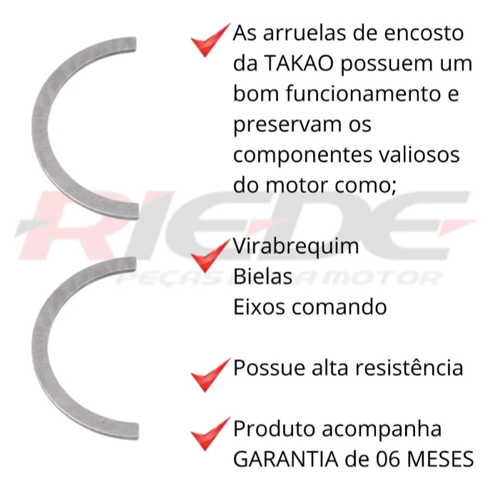 RIEDE MOTOR PEÇAS - SÃO PAULO MARCA: TAKAO GARANTIA: 06 MESES CONTÉM: 01JOGO DE ARRUELA DE ENCOSTO MEDIDA: STANDER OBS: 2 pçs APLICAÇÃO: AMERICANOS GM 2.0L 16V DOHC 06-08 TRACKER , JAPONESES SUZUKI 2.0L 16V DOHC J20A GAS 09-15 SX4, 2.0L 16V L4 DOHC J20A 98-06 GRAND VITARA , 2.0L 24V V6 H20A 95-98 VITARA , 2.5L 24V V6 DOHC H25A 98-02 GRAND VITARA , 2.7L 24V V6 DOHC H27A 02-05 GRAND VITARA, 2.0L 16V L4 DOHC J20A 07-16 GRAND VITARA Efetue a compra com CPF. Não efetuamos venda para CNPJ para fora do Estado de SP, devido imposto ST que se emitida, será de responsabilidade do comprador o pagamento, pois vendemos apenas consumidor final. -