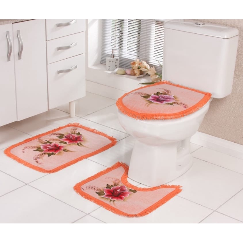 Jogo de Banheiro 3 Peças Emborrachado Pintado a Mão com Franja