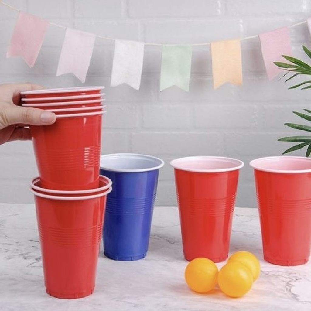 Jogo de Beer Pong c/ 12 Bolinhas e 12 Copos 400ml - Festa Estilo Americano - Cerveja