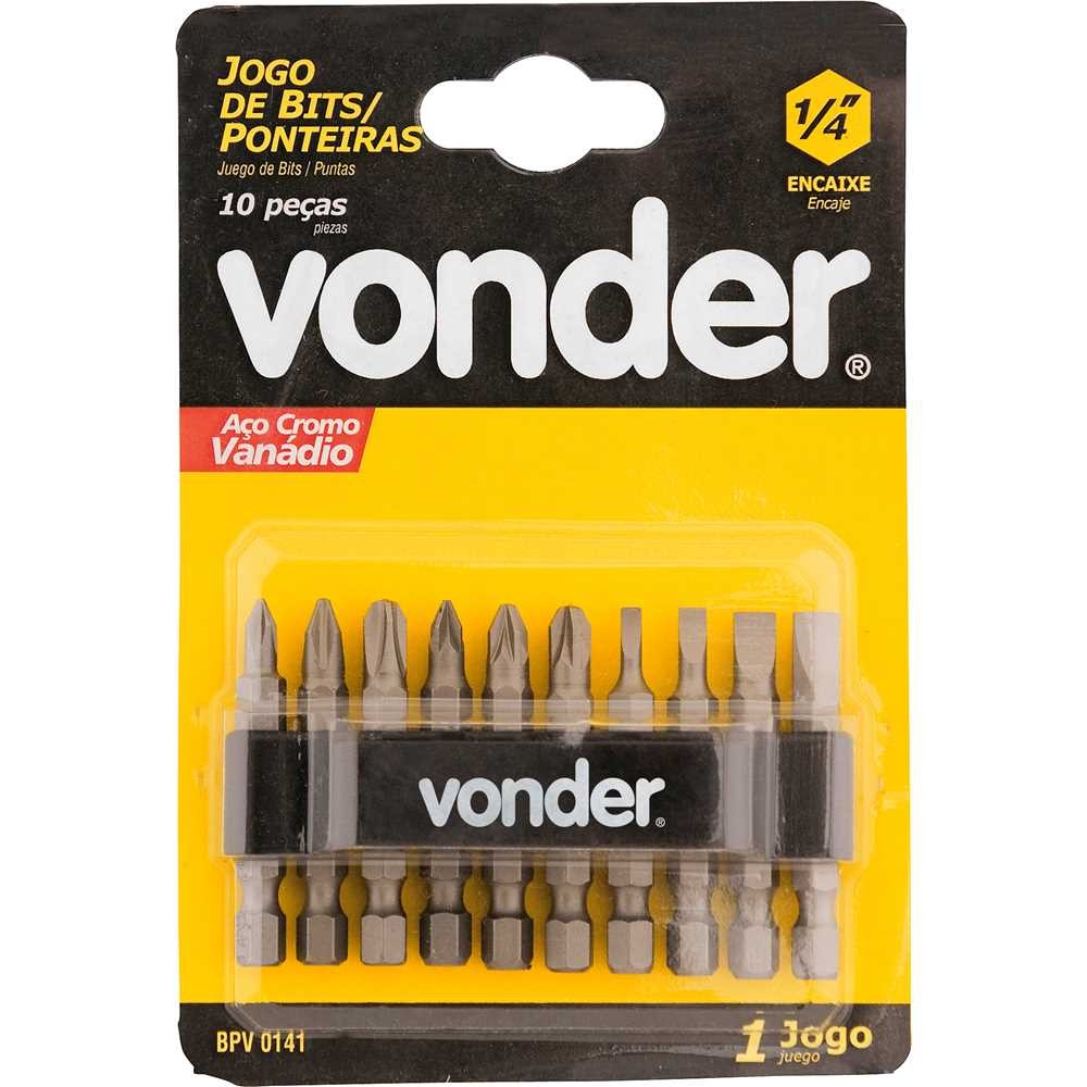 Jogo De Bits Ponteiras Com 10 Peças Encaixe Sextavado 1/4" Vonder Oferta Premium Resistente Top Aço