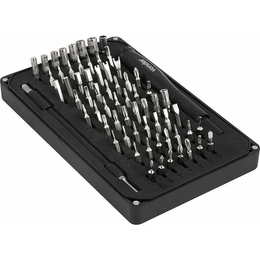 O jogo de bits/ponteiras de precisão com 66 peças da Vonder é ideal para trabalhos técnicos em eletrônicos, informática e manutenção geral. Com encaixe sextavado de 4 mm (5/32"), ele oferece excelente compatibilidade com diferentes ferramentas de precisão, sendo perfeito para uso profissional e doméstico em locais de difícil acesso. Fabricado em aço cromo vanádio com acabamento cromado, garante alta durabilidade e resistência à oxidação. O estojo com travas imantadas mantém todas as peças organizadas e seguras, incluindo uma extensão flexível e uma ampla variedade de bits e soquetes. É a escolha certa para quem busca versatilidade, praticidade e qualidade em um único kit. Características: Modelo: 3538066000 Referência: 3538066000 Massa aproximada: 0,4 kg Acabamento do bits: Cromado Material do bits/ponteira: Aço cromo vanádio Comprimento total do bits/ponteira: 28 mm Tipo do encaixe do bits: Sextavado - 5/32" (4,0 mm) Quantidade de peças: 66 peças Benefícios: Ampla variedade de bits e soquetes para diferentes aplicações Extensão flexível que facilita o trabalho em locais estreitos Estojo com travas imantadas para melhor organização Material resistente e acabamento cromado contra oxidação Ideal para manutenção de eletrônicos e uso geral em precisão Conteúdo da embalagem: 1 Jogo de bits/ponteiras de precisão, composto por um estojo plástico com travas imantadas, com 66 peças, sendo: 1 cabo adaptador em alumínio 4 mm (5/32') com apoio giratório, 1 extensão flexível, 7 soquetes sextavados com encaixe de 4 mm (2,5 mm, 3 mm, 3,5 mm, 4 mm, 4,5 mm, 5 mm e 5,5 mm), 1 adaptador 1/4" x 4 mm, 11 bits sextavados (0,7 mm, 0,8 mm, 1,3 mm, 1,5 mm, 2,0 mm, 2,5 mm, 3,0 mm, 3,5 mm, 4,0 mm, 4,5 mm e 5,0 mm), 3 bits tipo "U" (4 mm, 6 mm e 8 mm), 3 bits quadrados (Nº 0, Nº 1 e Nº 2), 4 bits phillips (J000, J00, J0 e J1), 4 bits hexalobular sem guia (T2, T3, T4 e T5), 8 bits hexalobular com guia (TR6, TR7, TR8, TR9, TR10, TR15, TR20, TR25), 2 soquetes multidentados com encaixe de 4 mm (G 3,8 mm e G 4,5 mm), 1 bits "SIM" (redondo), 6 bits fenda (1,0 mm, 1,5 mm, 2,0 mm, 2,5 mm, 3,0 mm e 4 mm), 4 bits tipo "Y" (Y000, Y00, Y0 e Y1), 3 bits estrela (P2, P5 e P6), 5 bits phillips (PH000, PH00, PH0, PH1 e PH2) e 2 bits triangulares (2 mm e 3 mm).