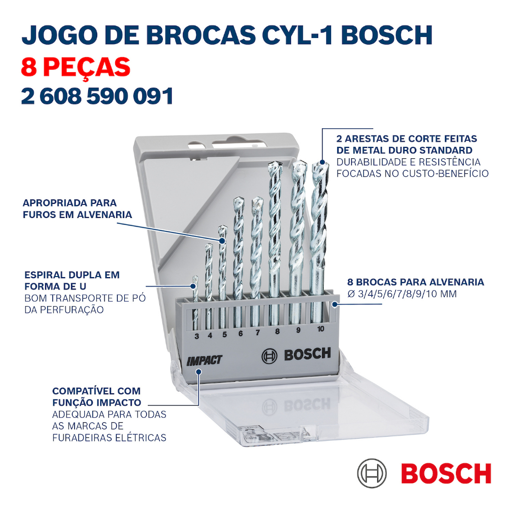 | Jogo De Broca Cyl-1 Para Concreto Bosch 8 Peças 2608590091 este produto | R$ 54,90 | 21% | 4.9/5 | 4 |