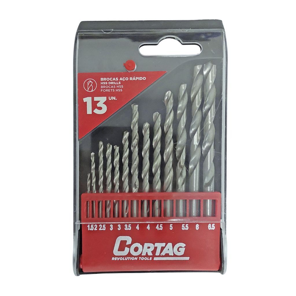 Jogo de Broca de Aço Rápido 13 Peças Cortag 1,5mm a 6,5mm