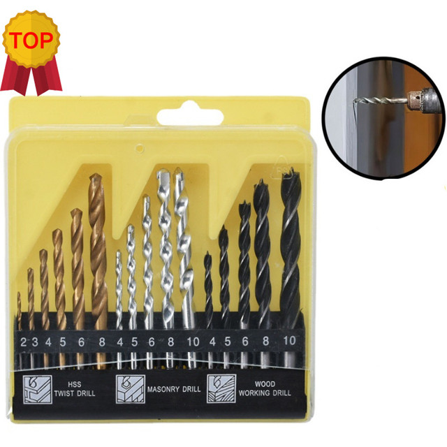 Jogo De Brocas 16 Peças C/ Estojo Para Madeira Ferro Concreto Metal Aço Furadeira Parafusadeira