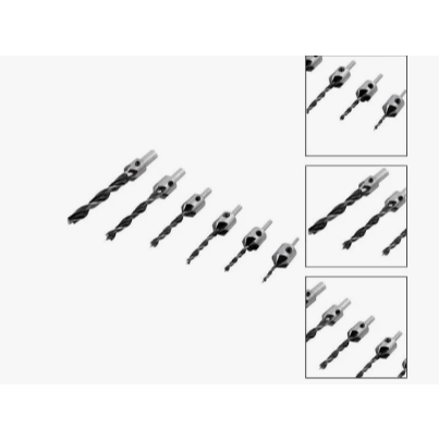 Indicado para uso em madeira. O conjunto oferece uma variedade de tamanhos para atender a diferentes aplicações, proporcionando versatilidade e praticidade no trabalho. Acompanha chave Allen para substituição das brocas, sempre que necessário. Conteúdo da Embalagem - 6 brocas com escareadores, sendo: - Broca 3 mm x 60 mm com escareador de 16 mm - Broca 4 mm x 73 mm com escareador de 16 mm - Broca 5 mm x 83 mm com escareador de 16 mm - Broca 6 mm x 89 mm com escareador de 16 mm - Broca 8 mm x 110 mm com escareador de 16 mm - Broca 10 mm x 120 mm com escareador de 19 mm - 1 chave Allen de 2,5 mm Detalhes Técnicos - Número de peças: 7 - Tipo de haste: Paralela (cilíndrica) - Peso aproximado: 0,29 kg