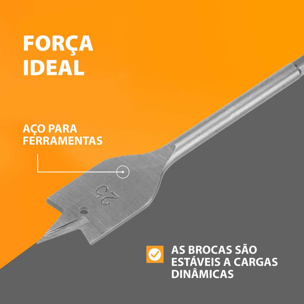 Conjunto de Brocas para Madeira Sparta 7040555 – Resistência, Precisão e Praticidade em Cada Perfuração O conjunto de brocas Sparta 7040555 é perfeito para quem trabalha com montagem de estruturas de madeira e precisa de uma solução prática e confiável para perfurações profundas ou furos cegos. Composto por 6 brocas nos tamanhos mais populares (10, 12, 16, 18, 20 e 25 mm), o kit atende às necessidades mais comuns em marcenaria e carpintaria. A pontas centrais das brocas proporcionam posicionamento preciso, garantindo que os furos sejam feitos exatamente onde necessário e com maior estabilidade. Ideal para furos retos, o conjunto permite trabalho eficiente mesmo em situações que exigem rapidez e repetibilidade. Fabricadas em aço ferramenta resistente 45, as brocas suportam cargas dinâmicas elevadas e oferecem alta confiabilidade no uso contínuo. As bordas de corte com dureza entre 45 e 54 HRC asseguram durabilidade, mantendo o poder de corte por muito mais tempo, mesmo em madeiras duras. As hastes hexagonais garantem fixação segura no mandril, evitando o giro indesejado e contribuindo para um trabalho mais conveniente e seguro. Compacto, robusto e eficiente, o conjunto Sparta 7040555 é uma excelente escolha para profissionais e amadores que não abrem mão de qualidade e desempenho.