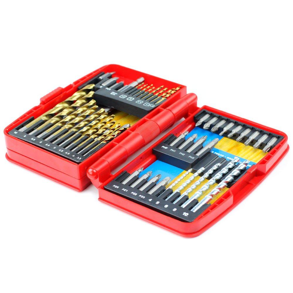 FortG - A Marca Forte da Gurgel Jogo de brocas e bits é indicado para uso em construção civil, alvenaria e marcenaria. Fabricado em material resistente, proporcionando praticidade e eficiência. Acompanha estojo plástico para organização das peças, facilitando o transporte e armazenamento dos itens. Conteúdo da Embalagem: - 18 Brocas HSS TIN, sendo: - 2 brocas de 1,5mm - 2 brocas de 2,0mm - 2 brocas de 2,5mm - 3,0 - 3,2 - 3,5 - 4,0 - 4,5 - 4,8 - 5,0 - 5,5 - 6,0 - 6,5 - 8,0 - 10mm - 5 Brocas para Alvenaria: 4,0 5,0 6,0 8,0 10mm - 3 Brocas chatas para Madeira: 13 16 19mm - 5 Brocas de 3 Pontas para Madeira: 4,0 5,0 6,0 8,0 10mm - 1 Adaptador magnético para Bits - 8 Pontas Bit de 50mm, sendo: - 4 Pontas Cruzada (Philips): PH0 PH1 PH2 PH3 - 4 Pontas Pozidrive: PZ0 PZ1 PZ2 PZ3 - 12 Pontas Bit 25mm, sendo: - 2 Pontas tipo Fenda: 4,0 6,0mm - 4 Pontas tipo Pozidrive: PZ0 PZ1 PZ2 PZ3 - 6 Pontas tipo Tork: T10 T15 T20 T25 T27 T30 - 1 Estojo para acondicionamento Importante - Garantia de 03 meses; - Enviamos em até 24 horas úteis; - A embalagem pode variar de acordo com o estoque do fabricante; - A cor do produto pode variar de acordo com a tela do seu smartphone/computador; - Qualquer dúvida, utilize o campo "Perguntas e Respostas" e converse com o nosso SAC.